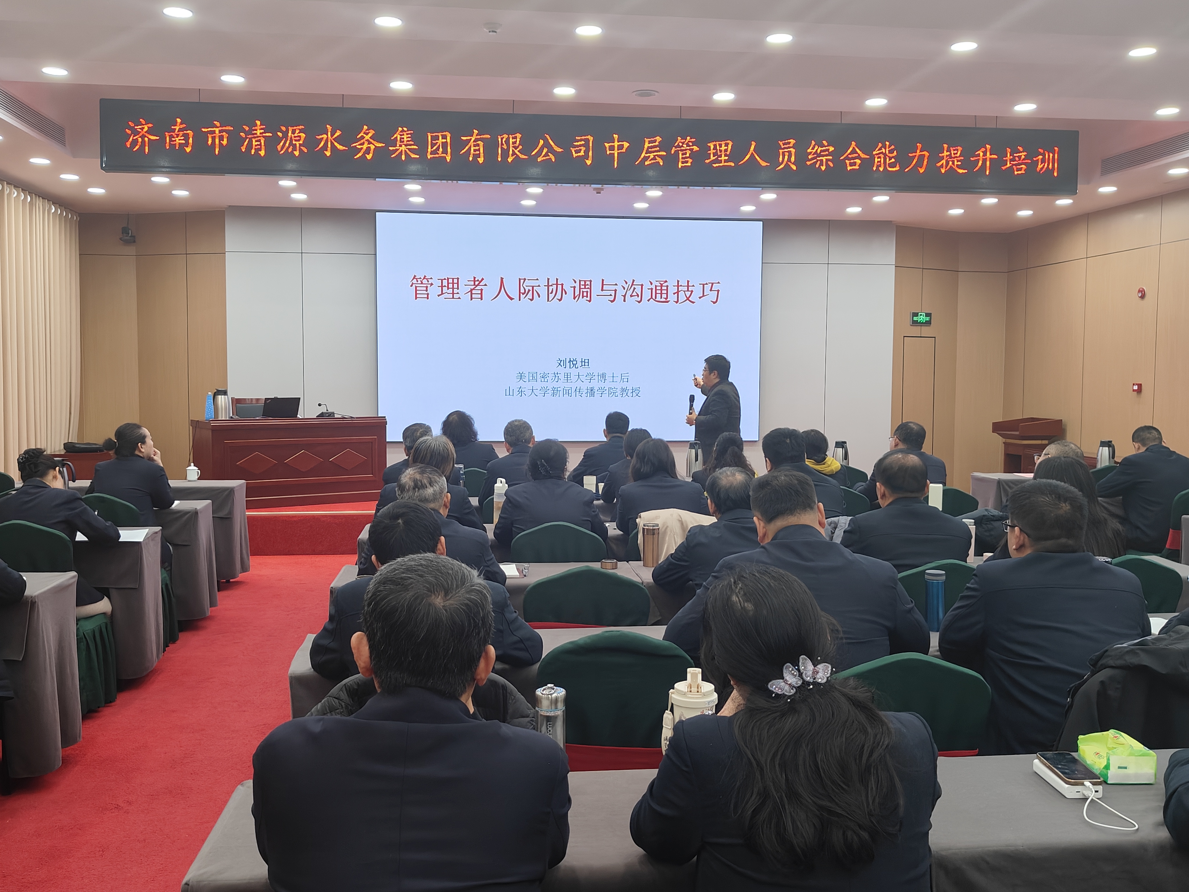 ? ? ? ?11月18日,清源水務集團聚焦中層管理人員綜合需求,開展了專題培訓,以靶向賦能為抓手,為集團高質量發展注入動能。黨委副書記、總經理金強,黨委副書記、工會主席惠新文,黨委委員、紀委書記耿曉燕,黨委委員、副總經理張富德出席,集團中層管理人員參訓。